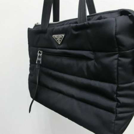 プラダの王道アイテムであるナイロンバッグ。こちらは一風変わって表面がダウンJKTのような仕上げのお品物になります。容量も大きめのトートバッグで使用感の良い一品ですね( *´艸`)状態も非常に良好でお値段頑張らせて頂きました!!