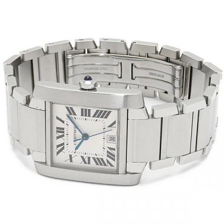 自動巻きは、ローターがある分、どうしても厚みが増します。こちらの、タンクフランセーズLMは、厚みが薄く、Yシャツの袖にも収まり易く、シンプルで、スタイリッシュなモデルです。