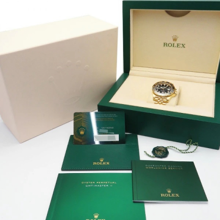 中々入荷しない希少なGMTマスターのイエローゴールド無垢モデルです。